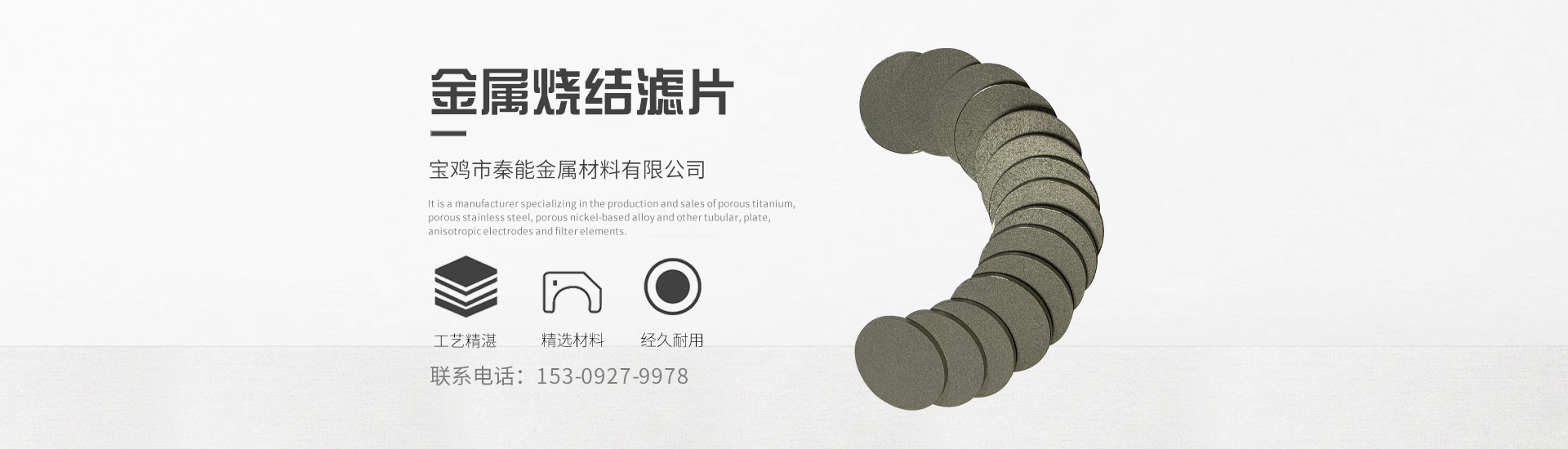 宝鸡市秦能金属材料有限公司,成立于 2018年2月,位于享誉中国钛谷的宝鸡国家高新技术开发区高端装备产业园,是一家专业生产销售多孔钛,多孔不锈钢,多孔镍基合金等管式、板式、异性电极及过滤元件的厂家。产品常用于制氢设备、新能源氢能系列产品、环保、石油、化工、冶金、航空航天、电子、电化学、催化、电堆、海水淡化设备等多个高端技术行业的领域。凭借高质量的产品,良好的信誉,优质的服务,本公司与多家国家科研院所保持良好的合作关系。本公司是集科研、生产、销售于一体的现代化民营科技型企业,公司严格按 照国家标准生产各种过滤精度,各种规格型号的过滤元器件,并可为各种用户的 不同需求设计生产相应规格型号的过滤器材。我们以优质的产品竭诚为您的企业发展做出贡献......